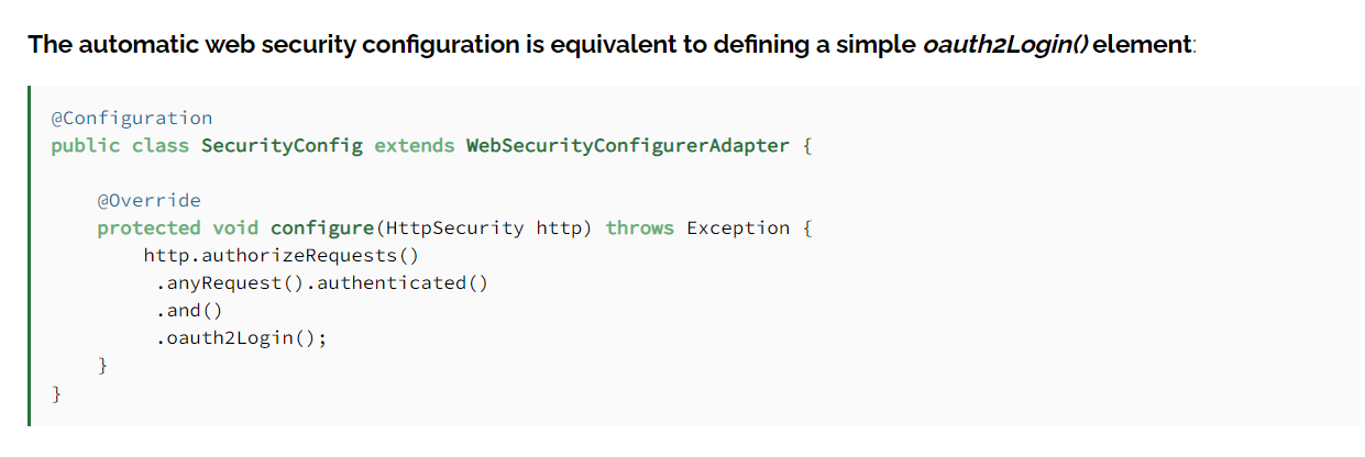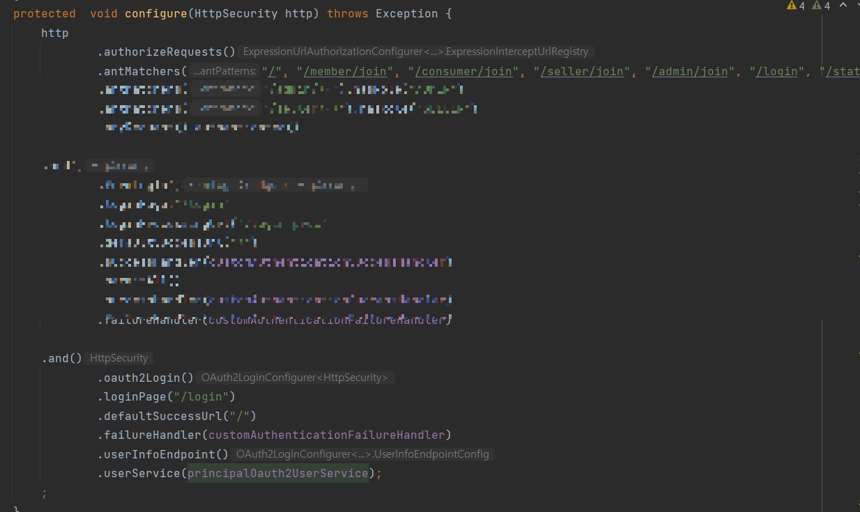 제일 첫번째로는 SpringSecurityConfig 파일에 configure()에서 작성한 부분에 OauthLogin() 메소드를 추가하여 소셜 로그인을 활용할 수 있다.